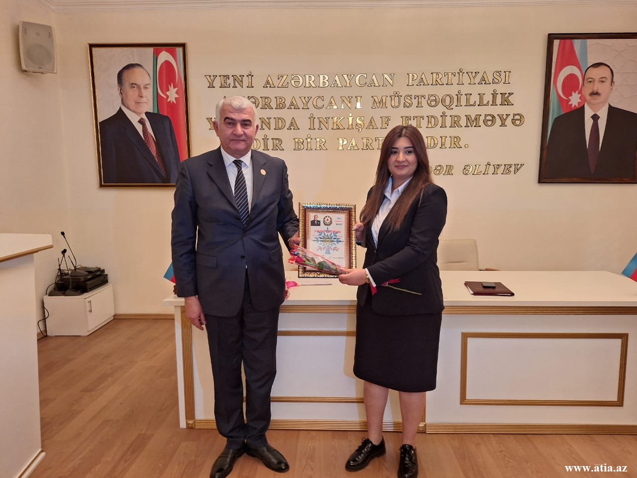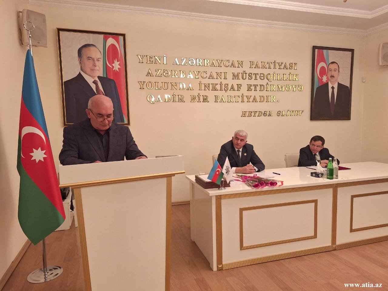 Tədbirdən əvvəl Ümummilli Lider Heydər Əliyevin büstü tədbir iştirakçıları tərəfindən ziyarət olunub və önünə tər çiçəklər düzülüb.