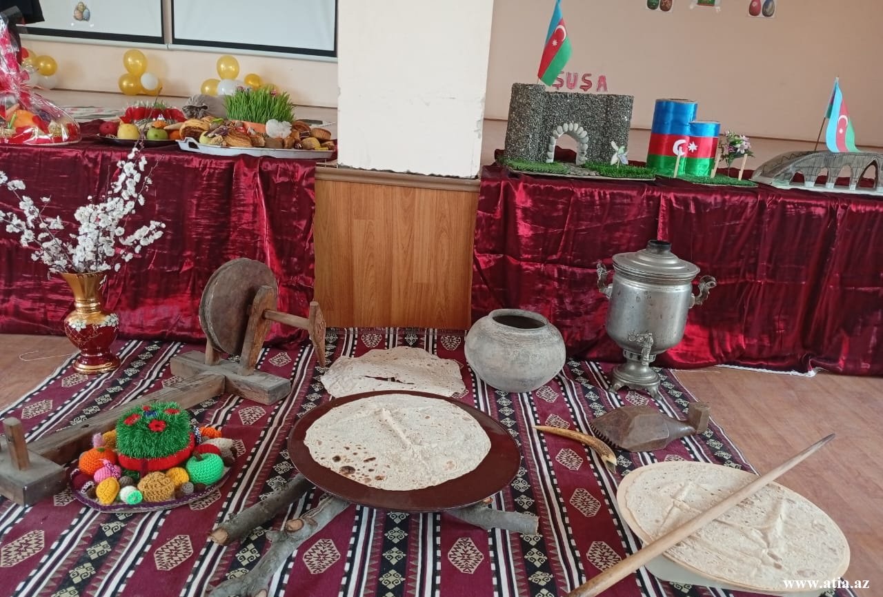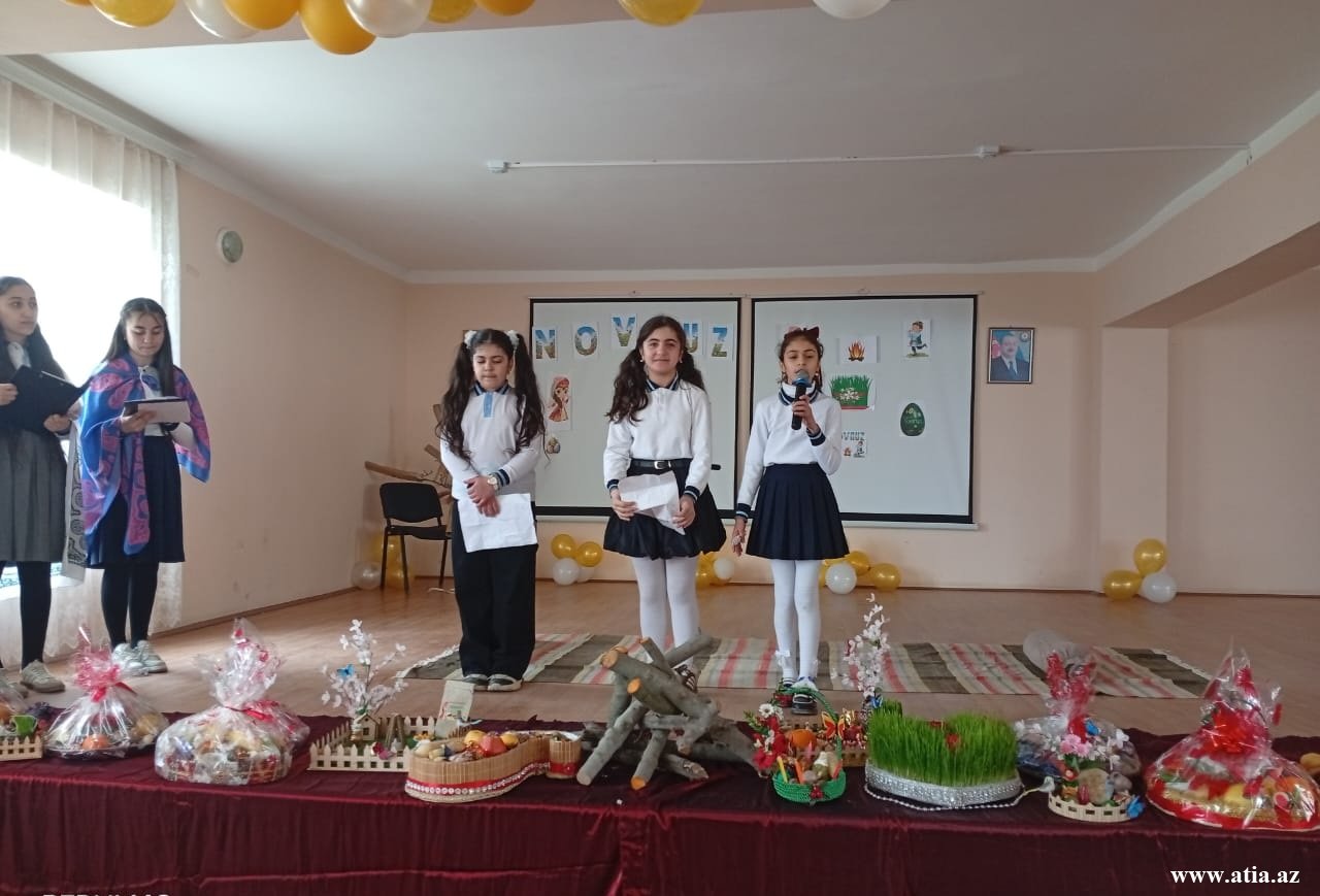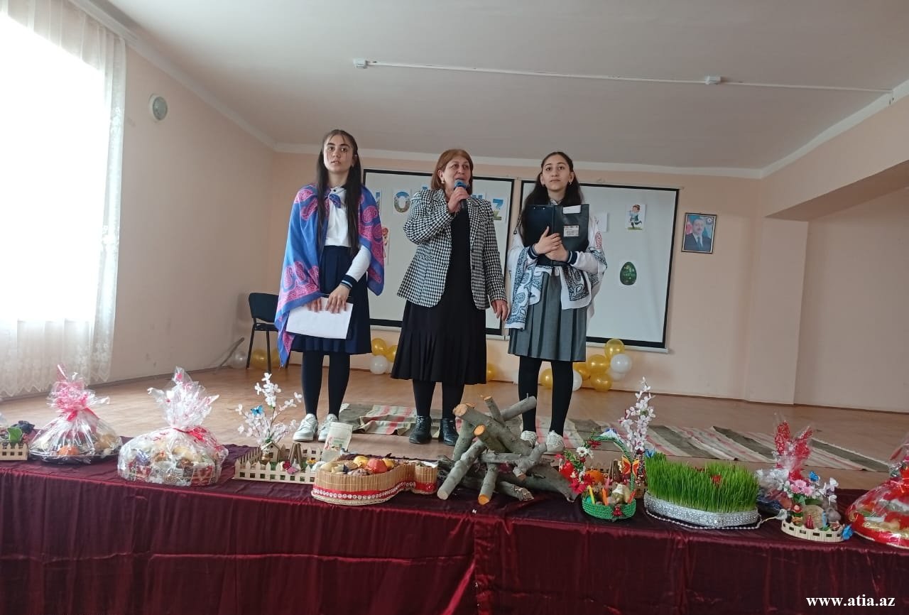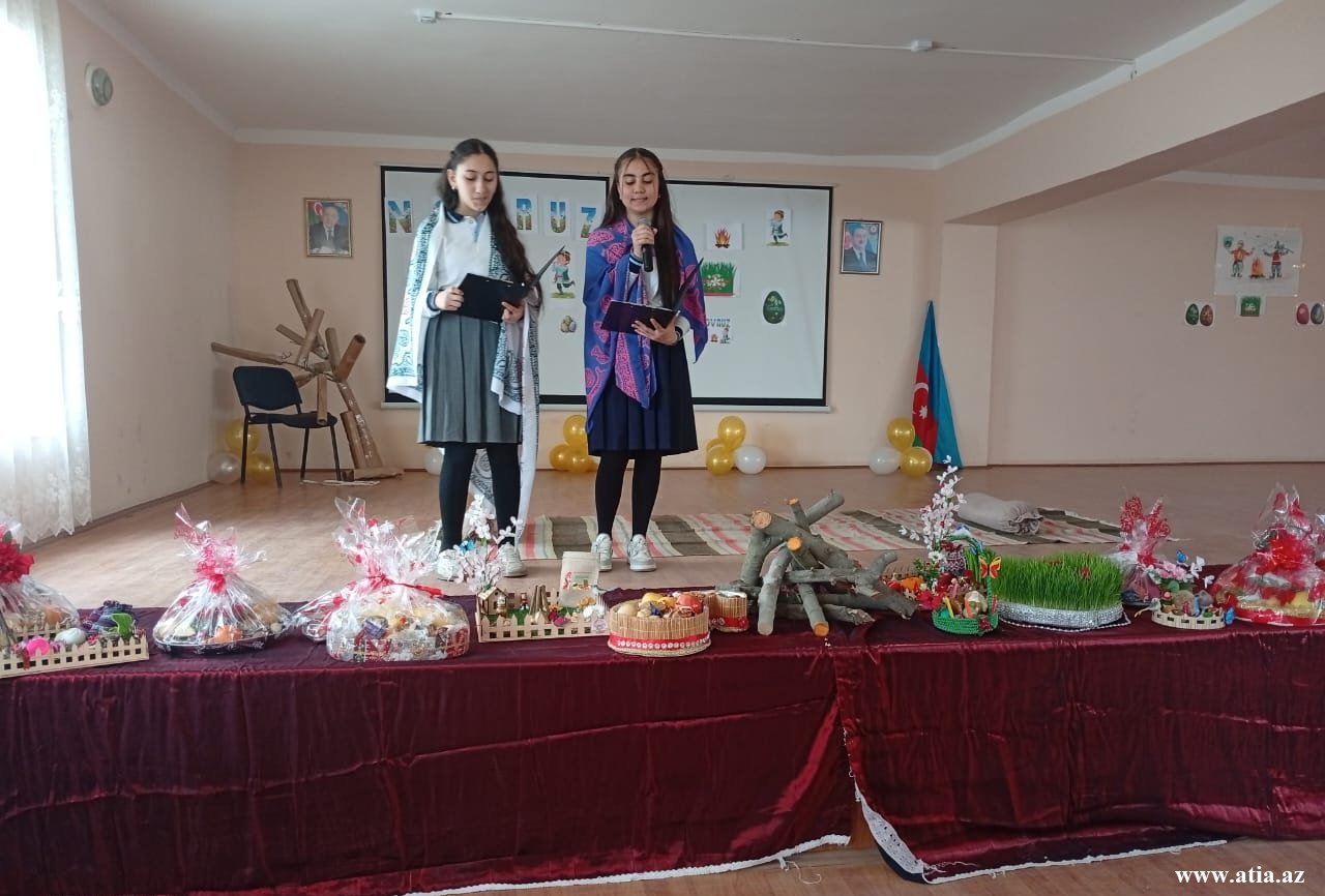 Məktəbin qarşısındakı geniş meydanda Bayram tonqalı çatılıb, tədbirin keçirildiyi zala yaraşıqlı xalça salınıb, xalçanın üzərinə rayonumuzun adət-ənənələrini əks etdirən qədim əşyalar qoyulub. Novruzun simvolu olan şəkərbura, paxlava və səmənili xonçalar göz oxşayıb.
